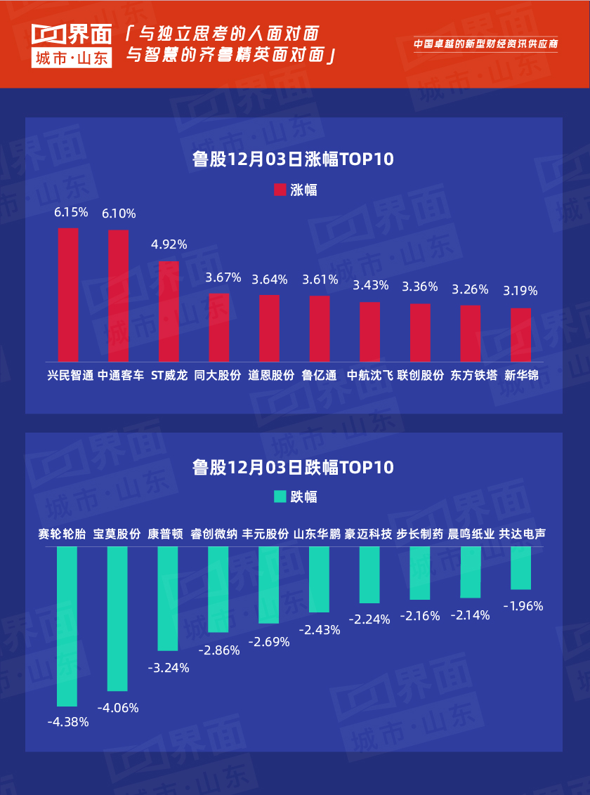 山东上市公司关键指数(指标)12月3日表现如下: