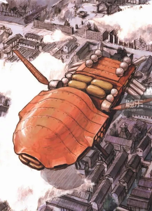 对现实中的飞艇进行夸张化处理,便有了翔鲸丸