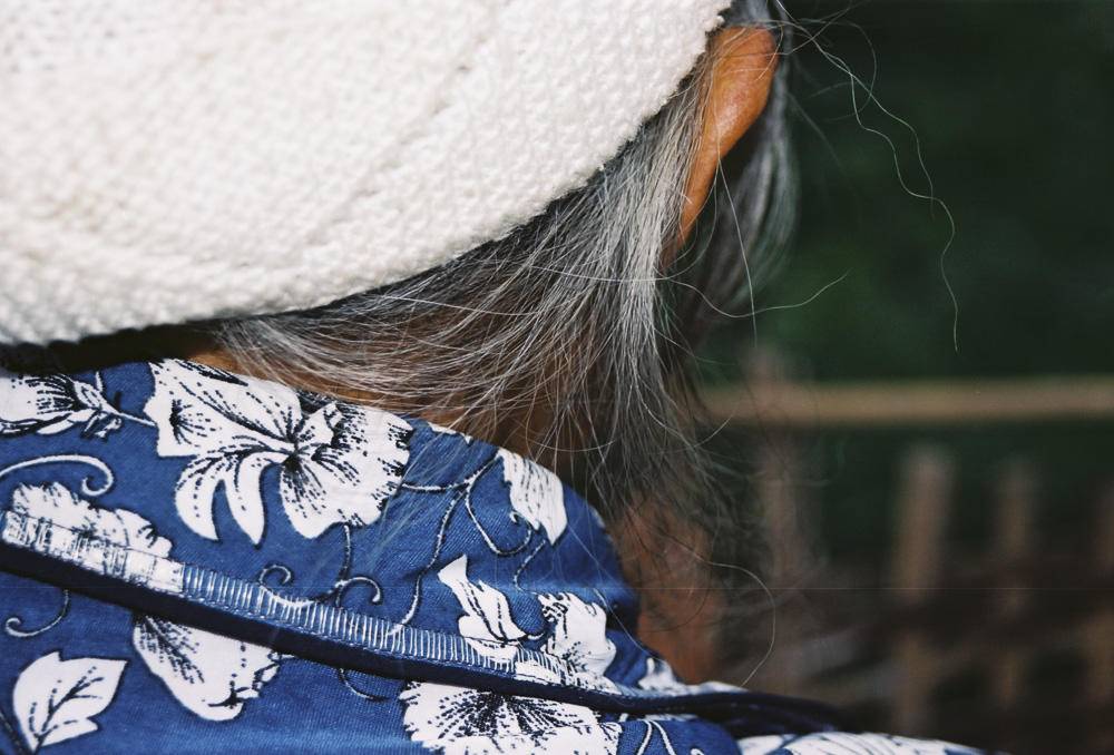 整理这些照片的时候,我发现这张我在背后望着奶奶的照片,之前被我忽视了,现在翻出来却让我非常感动。摄影真是有很强的魔力,一瞬间,就把我带回到了过去,看着奶奶看电视的样子。奶奶是个文盲,听不懂普通话,看不懂文字,电视对她来说只能通过里面人物的肢体语言来理解,这对她来说实在不怎么有趣,每晚她只是陪我们看一会就去睡觉了。