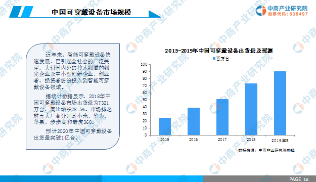 据中商产业研究院发布的《2019年中国智能手表行业市场前景报告》显示,2018年中国可穿戴设备市场出货量为7321万台,同比增长28.5%。2018年中国智能手表总销量205台(不包含儿童智能手表),同步增长63%,2019年中国智能手表市场还将保持55%的增长幅度,突破300万部。