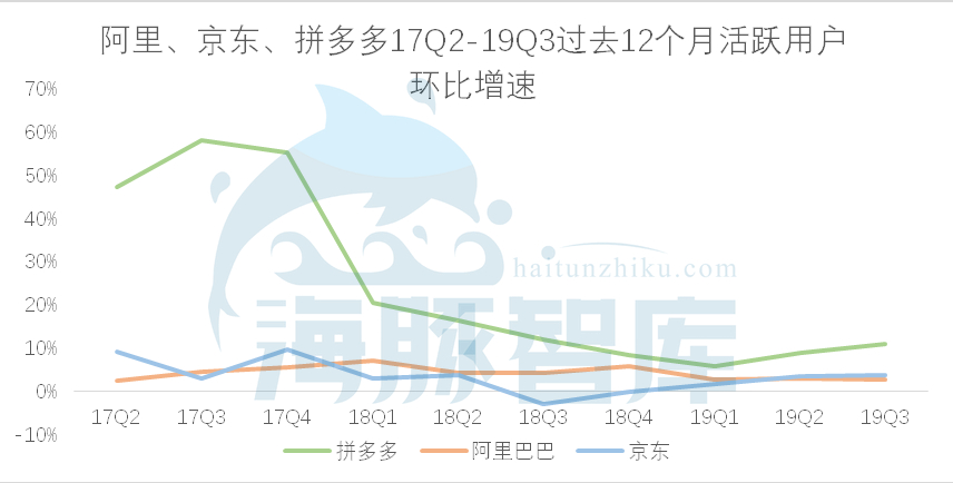 几年前,随着移动端购物成为一种习惯,各个平台之间的流量争夺战开始进入到白热化阶段。然而随着流量红利见顶,连阿里和京东这种巨头的用户增速都开始走下坡路。然而就在这时,以社交为突破口的拼多多以燎原之势迅速崛起,如探囊取物般从其他平台的虎口中夺取到了大批新用户。