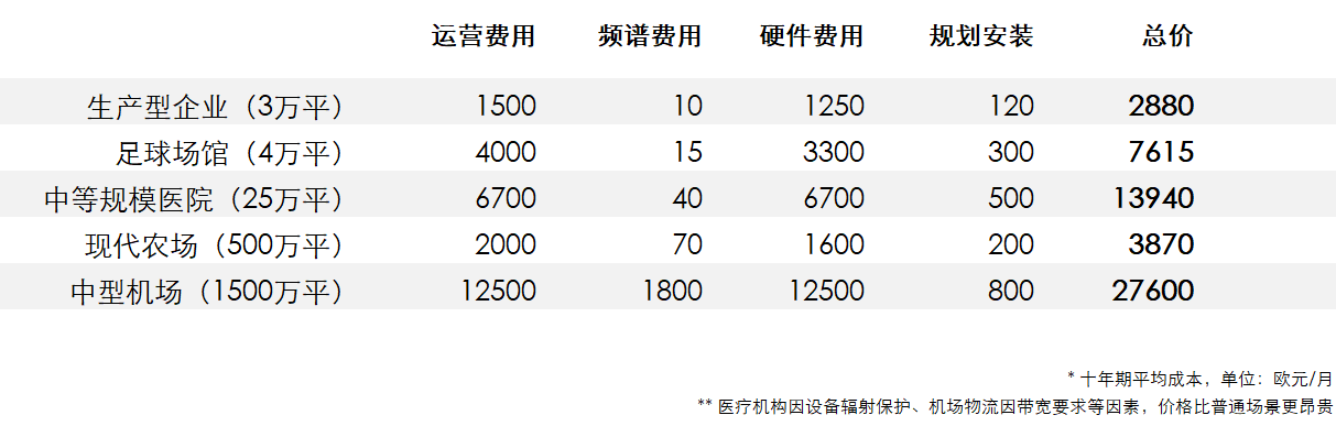 根据5G咨询公司Mugler的研究数据,一座占地三万平米的中小型企业工厂,若要建设私有5G网络,十年期的平均成本约为2900欧元/月,其中运营成本约为1500欧元/月。