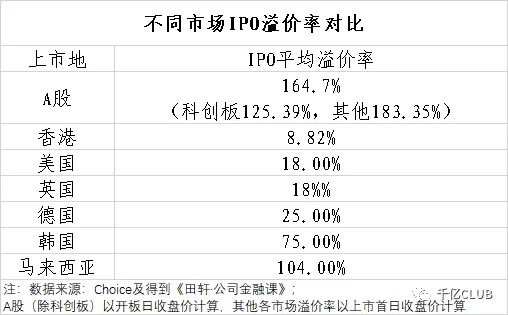 经历长时间的探索和试错,发达国家或地区的资本市场普遍具有市场化程度和理性程度较高的特点。我们正在大刀阔斧推动的注册制,在发达市场已实施数年,他们的新股市场表现对我们来说具有极大的参考价值。但限于数据的可获得性,可为君无法对国际资本市场新股溢价情况逐个进行对比,这里仅选择可获得的数据为A股做参考。