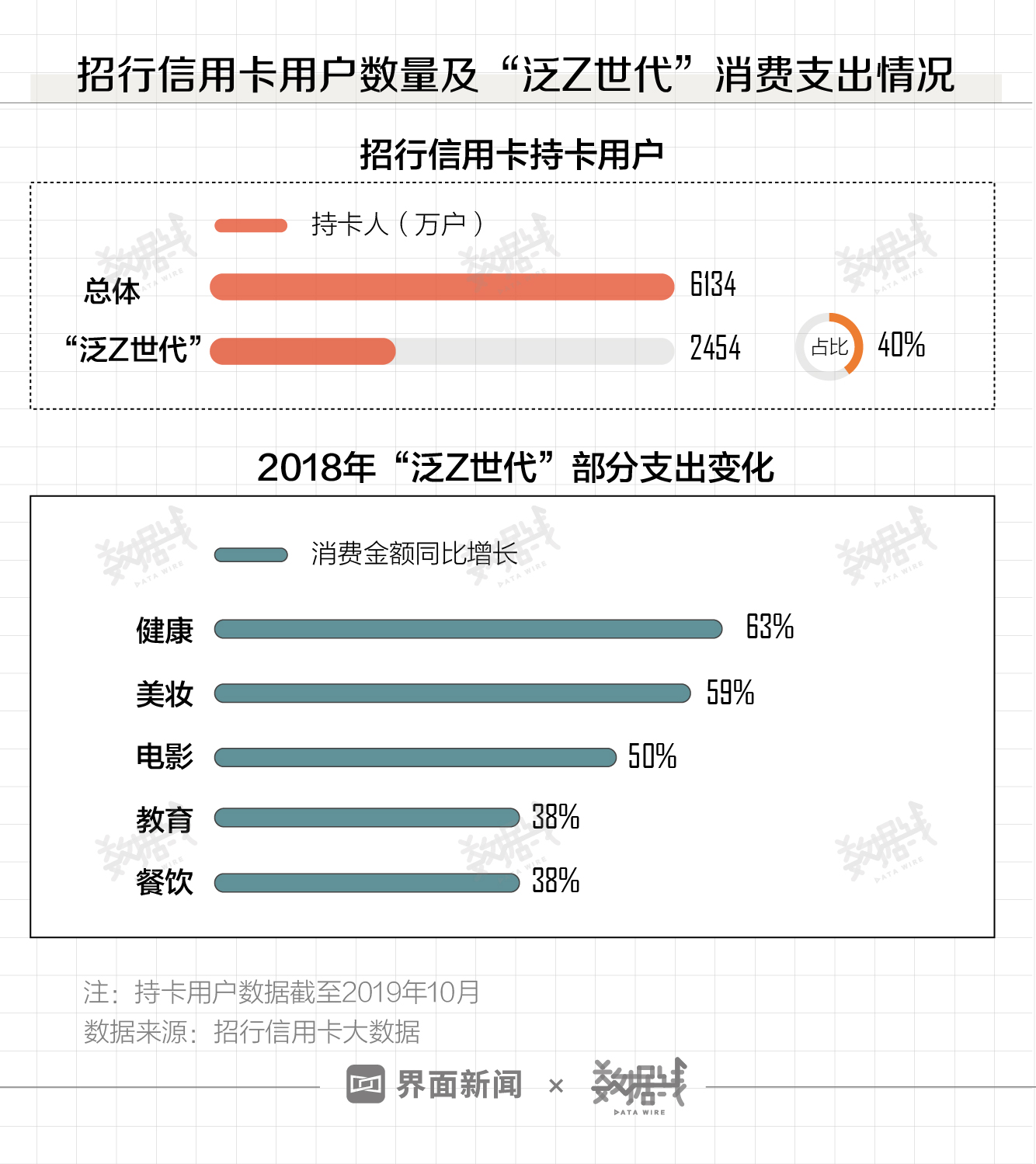 招行信用卡在一场关于“泛Z世代”的“问道”分享了一组数据,以2019年10月末流通户为样本,目前的6000万持卡人中,“泛Z世代”的占比近40%。