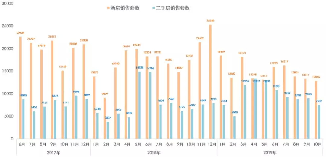 2019年1-11月份累计成交了二手房约989万平米,共计约10.5万套,已经高于2018年全年的成交量。其中2018年全年二手房成交9.37万套。