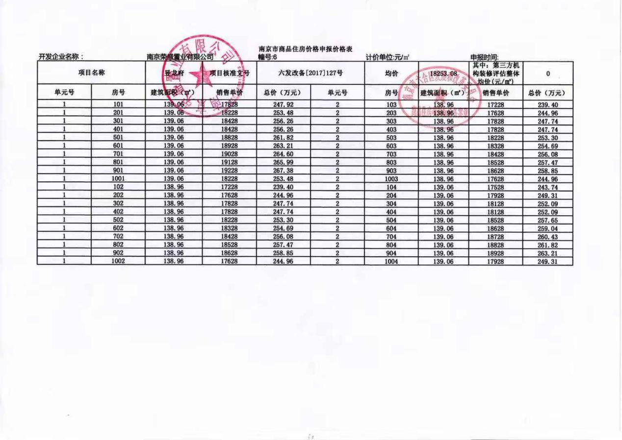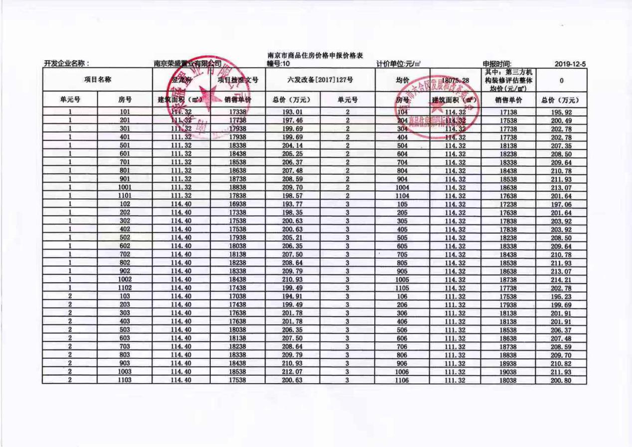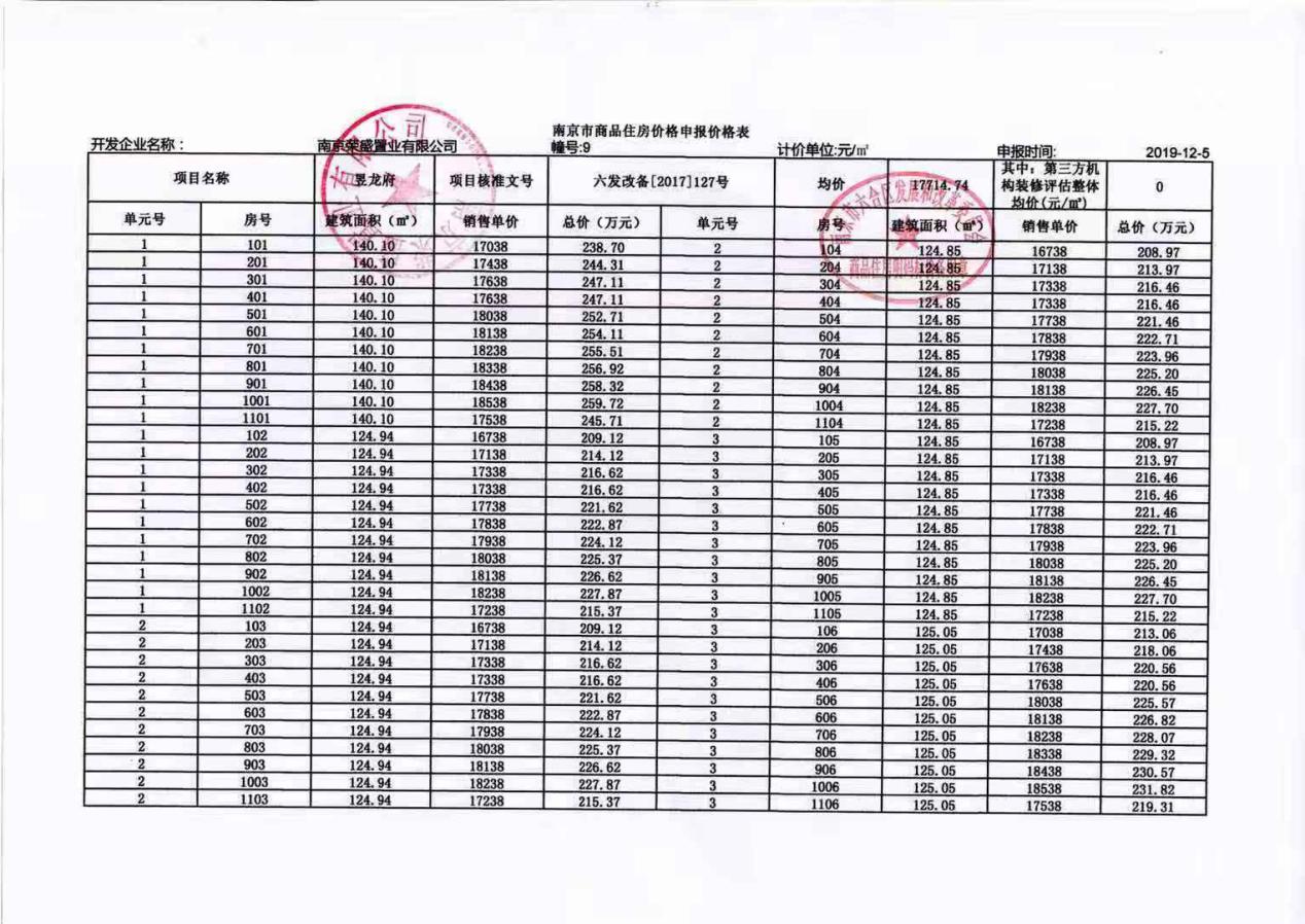 4、具体一房一价备案价格表