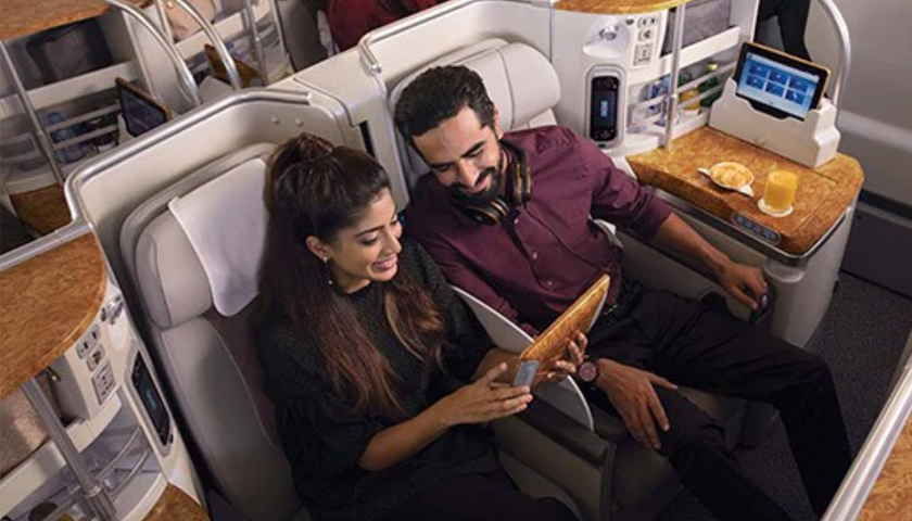 首先,乘客可以根据移动地图跟踪航班情况,并收听音乐、体育等广播。其次,机上wifi保证了两小时内20MB的数据流量,微信与电子邮件的传送不会有延误。阿联酋航空还推出了ice直播电视,可以实时观看体育赛事与突发新闻。