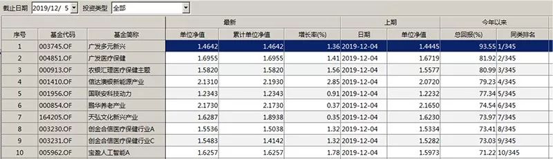 从主动股票基金的排名来看,截至12月5日,前十名基金之间的差距并不大,可以预见,最终的排名战依然会十分激烈。