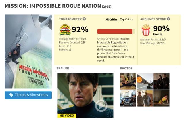 英国老牌电影杂志《帝国》称其是“现实和悬疑精品,系列最佳,碟中谍终于找到了属于自己的声线。”