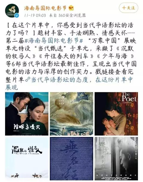 以海南国际电影节为例,本次电影节由国家电影局指导,中央广播电视总台与海南省人民政府共同主办,不可忽视的是高层政策的支持。