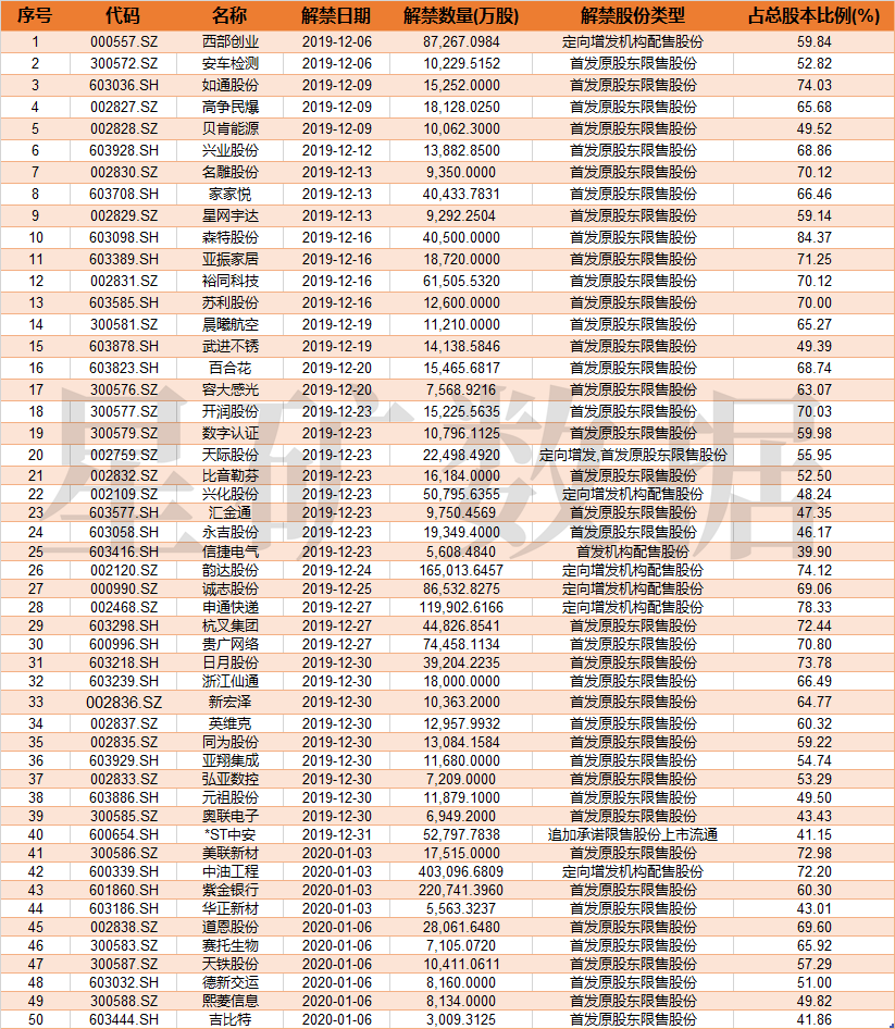 A股12月共有227只个股解禁,解禁股市值超2800亿元