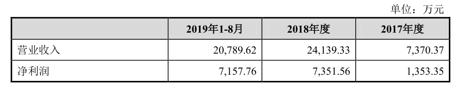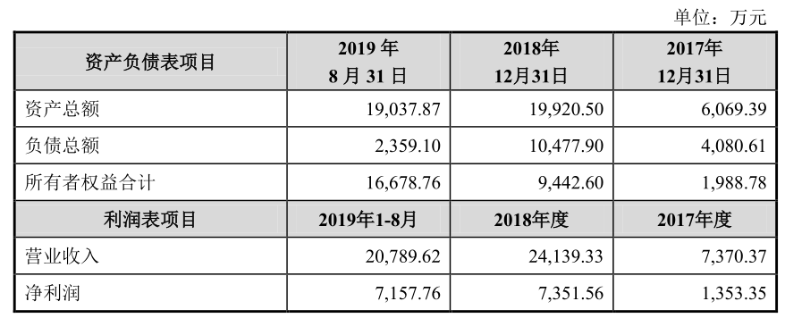 更何况,公司也不缺钱。截至2019年8月底,公司负债总额为2359万元,资产负债率为12.4%,同时公司的两位创始人也正值壮年,不存在被迫“卖身”的压力。