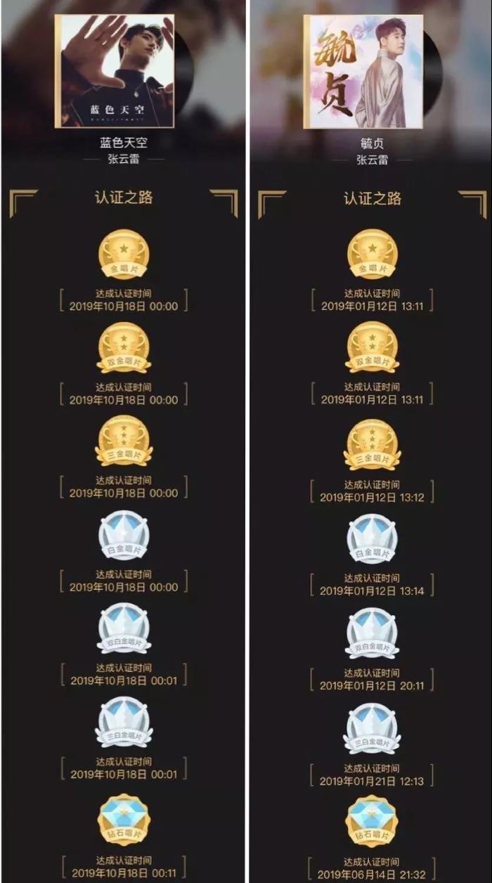 张云雷出的两首单曲《毓贞》和《蓝色天空》也多次打破QQ音乐纪录,甚至超过易烊千玺、张艺兴等流量歌手登上过榜首。