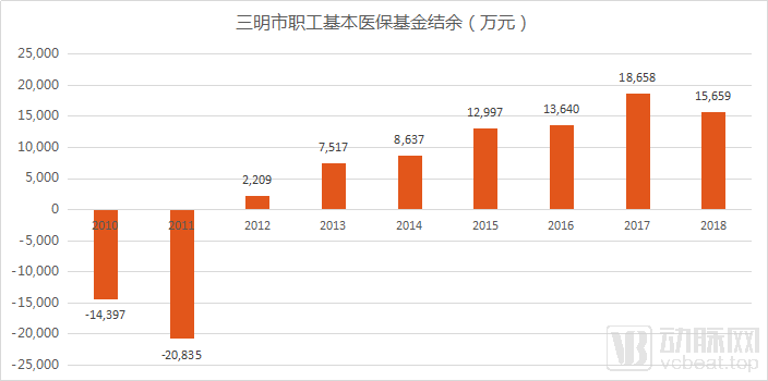三明医改前后职工基本医保基金结余情况,数据来源:三明市医保局