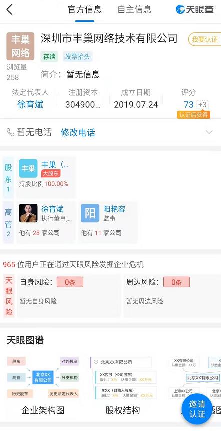 界面新闻查询天眼查发现,深圳市丰巢网络技术有限公司(即丰巢网络)已经于2019年7月24日成立,法定代表人为丰巢创始人及CEO徐育斌,注册资本为30.49亿元。