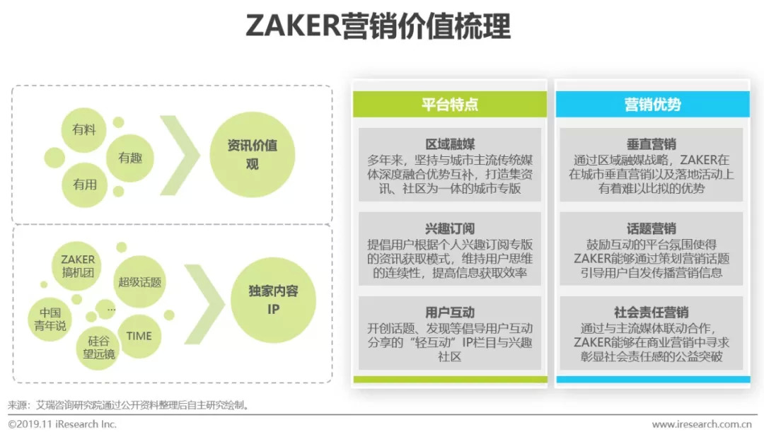 定位中高端用户精品阅读,ZAKER坚持“互动分享”和用户按照兴趣进行订阅的“定制化阅读”,在资讯平台大肆瓜分碎片时间的当下依旧保持对优质内容的把控,并且给予用户维持思维方式连续性的空间。此外,ZAKER多年来持续深耕区域融媒战略,通过与主流传统媒体的积极合作拓宽垂直渠道和线下合作空间,也为平台进一步补充了权威、优质的原创内容。同时,通过与主流媒体联动合作,ZAKER能够在商业营销中寻求彰显社会责任感的公益突破,打造社会责任营销的独特玩法。