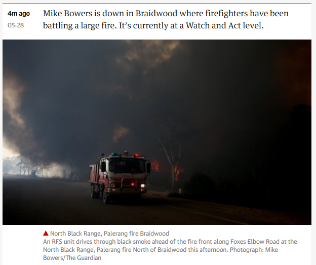 有报道称,新州郊区消防局正在众筹和募捐,为志愿消防员们提供水和食物。当媒体记者对数万名志愿者没有任何报酬地与大火搏斗数周表示担忧时,莫里森回应说:“是的他们很累,但他们也是想(自愿)出来保卫他们的家园。”