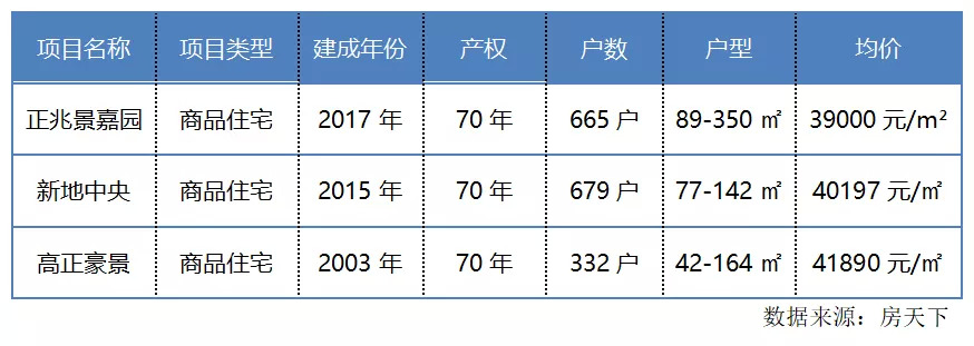 区域内主要商品住宅项目为正兆景嘉园、新地中央和高正豪景,均价在4万/平方米上下浮动,目前仅正兆景嘉园仍有部分户型在售。光明区内其他的热门项目,如华润公园九里花园、龙光玖龙台、绿地新都会等,均不在中心区范围内。