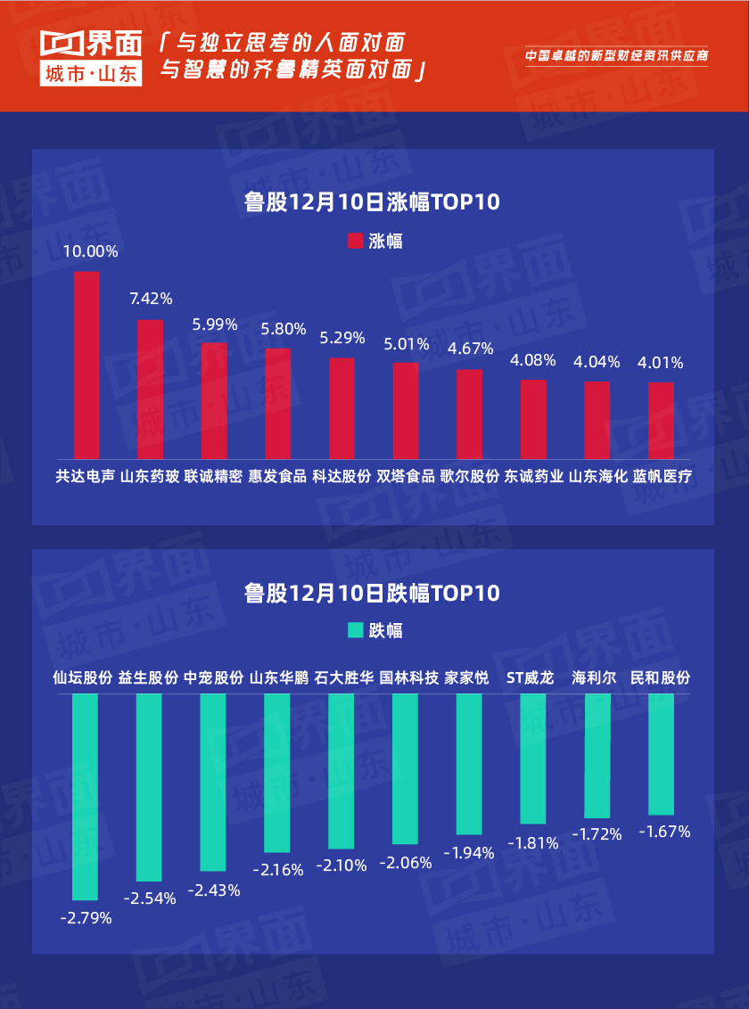 山东上市企业12月10日突出表现如下: