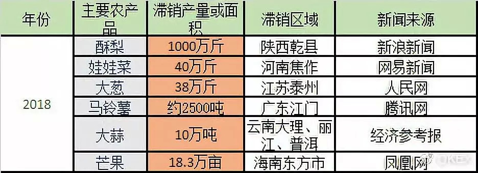 这种情况直到现在依然存在。以下是去年部分农产品滞销情况统计。