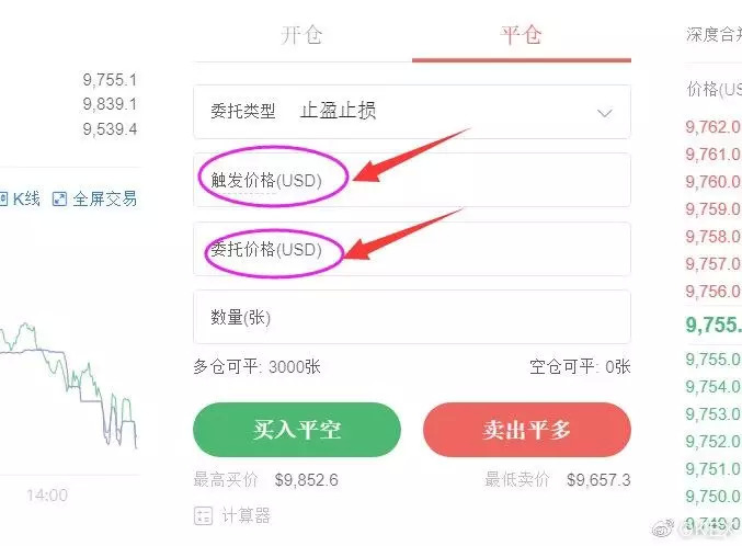 委托价格的设置较为随意,为了能让价格到达之后立刻成交,我们可以设置对市商更有利的价格——空单比触发价格高,多单比触发价格低,差价越大越容易成交(止盈止损有可能无法成交到的概率,因此在可能的条件下,让差价尽可能地大)。