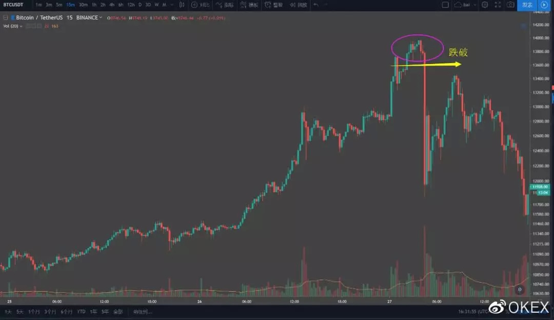 我最常用的技术指标是形态。每个市场有它常见的独特形态,这些常见形态来源于这个市场的特性和参与者的特点,BTC市场也是如此。过去数年里在我的观察中,最有用、最简单的两种形态操作策略:突破做多、市场情绪极其乐观亢奋时做跌破均线的瀑布短线空。