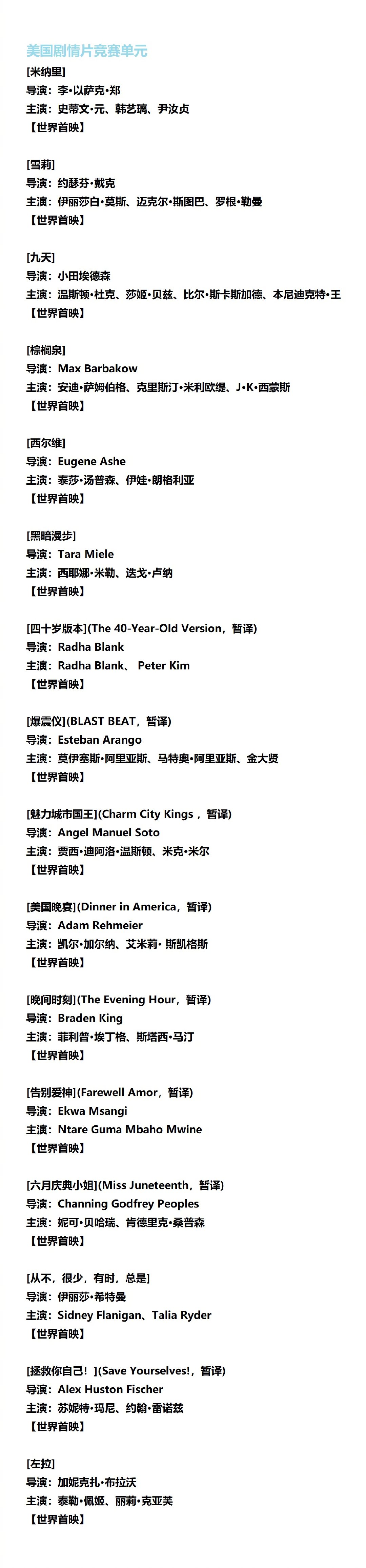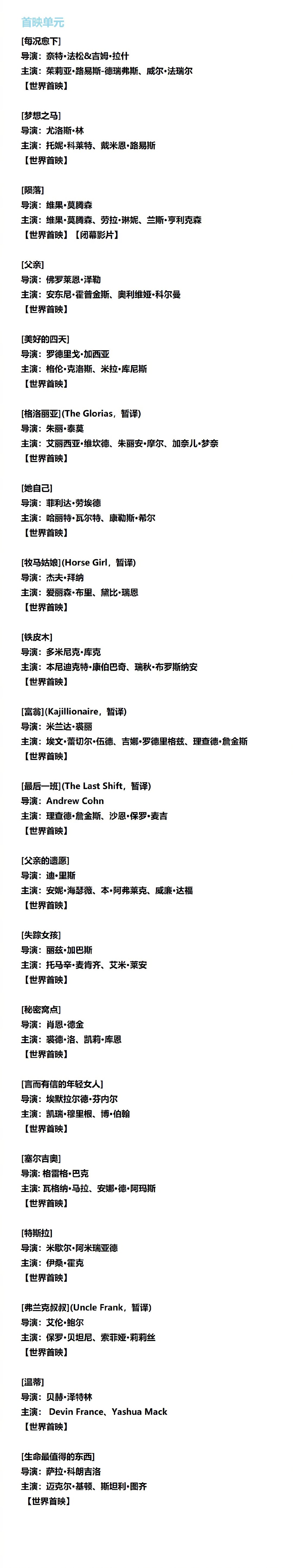 部分片单如下: