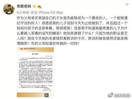 不久之前,张艺兴母亲就张艺兴名誉纠纷权胜诉一事发文,面对毫无悔意的“黑粉”,她痛心疾首”的表示,“为什么我的儿子要被人恶毒的诅咒和嘲讽,你的父母知道你所做的一切吗?”。而在张艺兴之前,杨幂状告黑粉的新闻也登上了热搜。