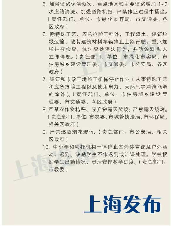 “上海发布”微信公号消息,上海市空气重污染应急工作组办公室决定,本市自12月10日19时起启动空气重污染黄色预警,请各单位立即启动相应的应急响应措施。提醒儿童、老年人和心脏病、肺病及其他慢性疾病患者尽量停留在室内,暂停户外活动;一般人群减少户外活动,尽量减少开窗通风时间。室外作业人员采取必要的防护措施。