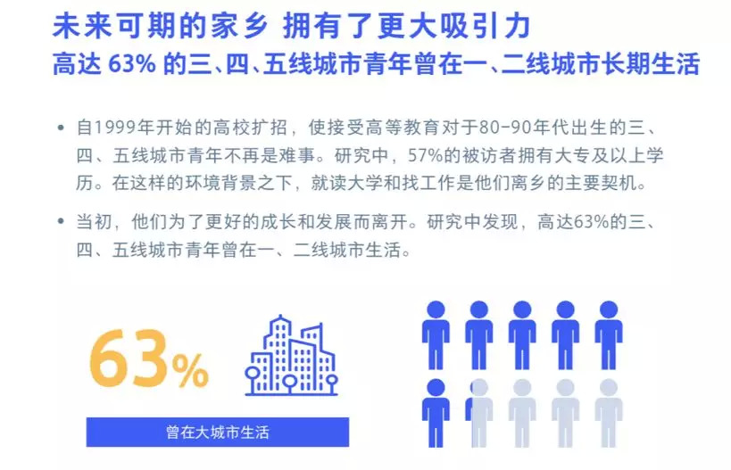 在这份研究报告看来,18-39岁,生活在三、四、五线城市、小镇回流青年和小镇本土青年融合后的群体,可被称为小镇新青年。