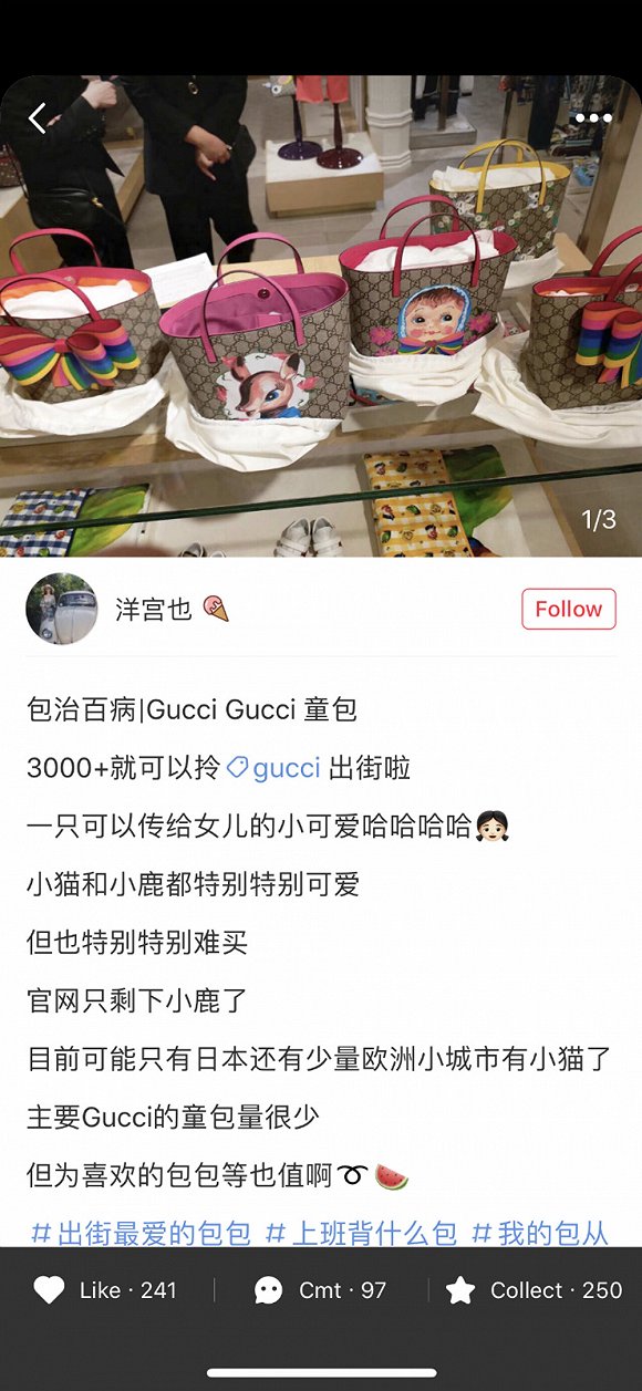 成年人购买奢侈品童包的趋势也在去年出现。大约在5000以内的价格或许是它们畅销的原因之一,但更重要的是,成年人可能就是冲着包上的卡哇伊蝴蝶结或动物图案去的。