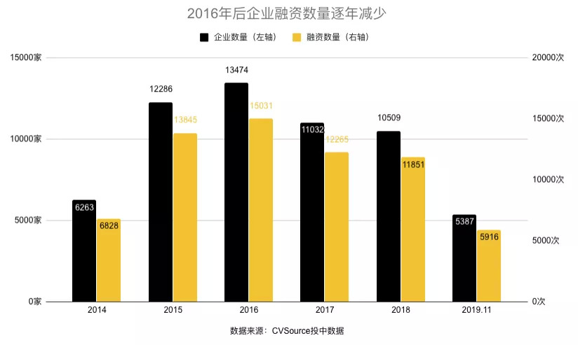 就在处处传来融资困难之际,时代传媒旗下的《时代数据》统计了2019年前11个月已有327家公司倒闭,为去年同期的3倍。而接下来不到一个月时间,因为资金缺乏的原因,这个数字可能还会继续增加(2018年全年倒闭458家)。
