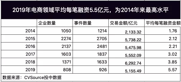 而在电商领域,今年平均每笔融资5.57亿元,是2014年来最高。