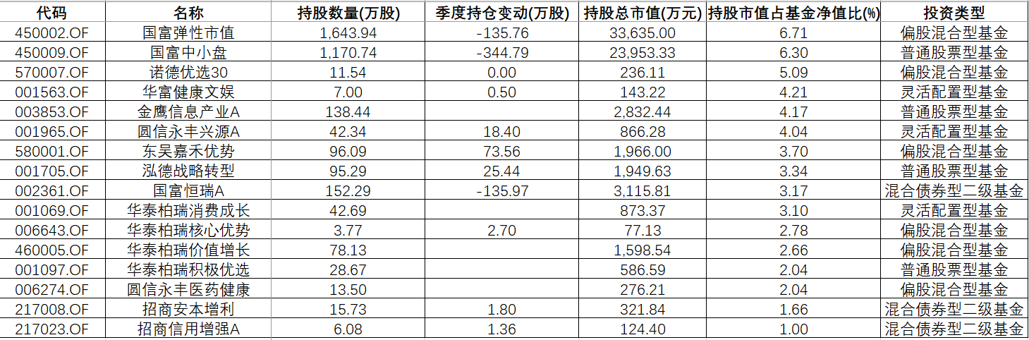 此外,华富健康文娱(001563.OF)、金鹰信息产业A (003853.OF)、圆信永丰兴源A (001965.OF)重仓比例也超过了4%。