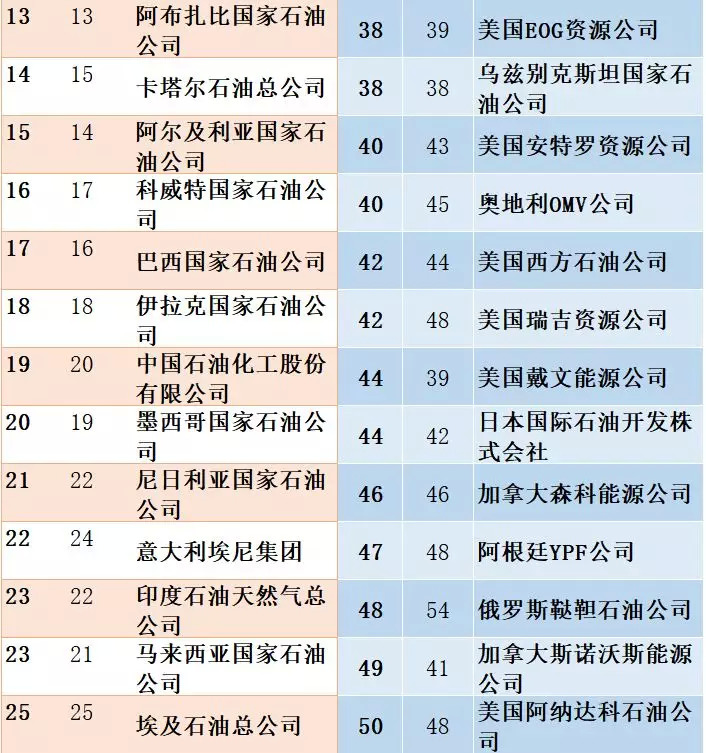 13、附录:全球最大石油公司50强排名