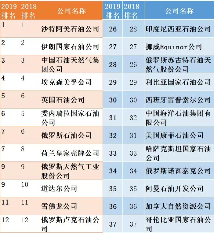 2019年,中石油继续稳居全球第三大石油公司,也是唯一进入榜单前十的中国企业。