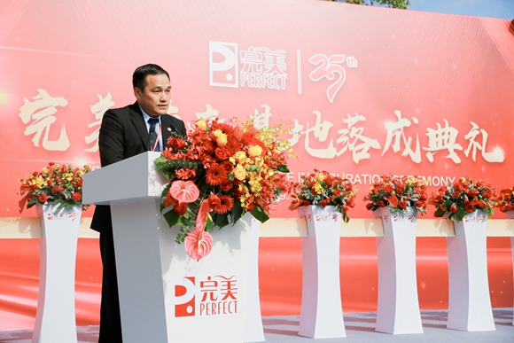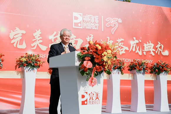 “华南基地的落成是完美25年再出发的一个新起点。华南基地从2011年开始投资建设,按照权威认证标准设计,同时引入了更多的智能化管理。从一块荒凉的平地到今天的圆满落成,从开始的规划到今天一步步成为现实,都是为了更加扎实我们的发展基础,让完美公司在未来走得更久、走得更远,走向百年、走向全球。”完美公司董事长古润金说。