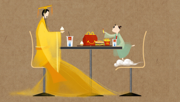 最近,一组中国风十足的麦当劳海报开始在社交媒体上传开,白娘子、梁山伯、玉皇大帝等一众传统民间故事人物在漫画中吃起了麦香鸡翅与麦旋风。