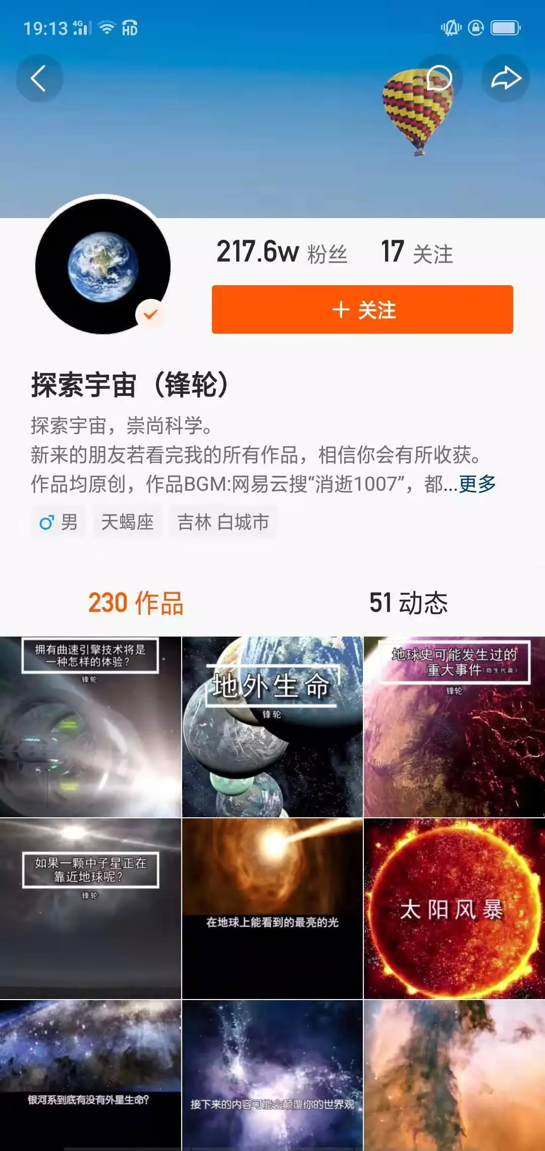 两人的经历甚至都有一些相似。2018年3月,表象的本质在今日头条上传了第一条天文科普视频。当时他还在四川内江的一个机关单位上班。“我对那些娱乐新闻不是很感兴趣,就想发一些自己感兴趣的内容。”