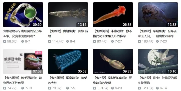 今年2月起,以古生物为主题,鬼谷藏龙和芳斯塔芙在B站上传了一系列原创科普视频。这些视频在B站受到了极大的欢迎,不到一年时间里,就累计超过3500万播放,并获得了近90万粉丝。