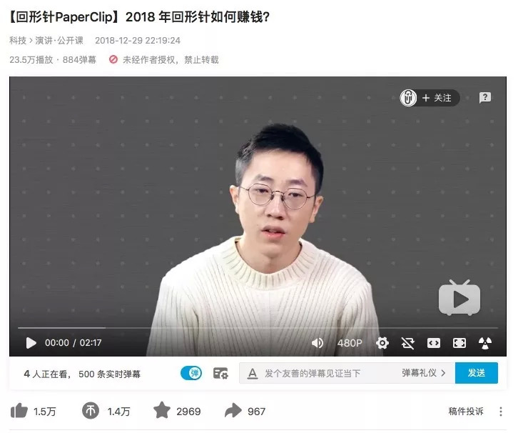 回形针在2018年底发布的视频中介绍了今年的营收