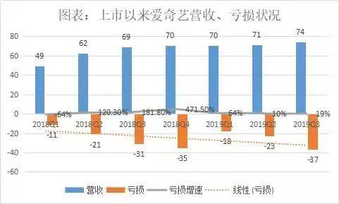 近日,爱奇艺发布2019年第三季度财报,作为国内“视频流媒体第一股”的爱奇艺,这份财报着实惨淡——财报显示,2019年Q3爱奇艺营收约74亿元,会员费收入过半,达37亿元,总体营收虽同比增长6.98%,但增速放缓,亏损幅度也进一步拉大,净亏损达37亿元。