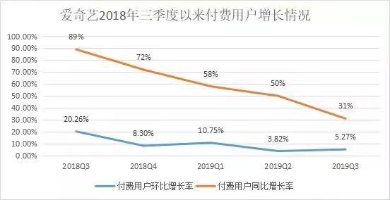 相比去年同期同比双位数的增长率,现在爱奇艺的增速已经下滑,这种用户下滑不仅体现在同比用户增长下滑,环比的增速也在下滑。很明显高速增长时代已经过去,低速增长成为常态,反映出来的现实就是爱奇艺的付费会员增长已经触顶了。