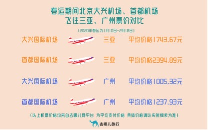 据去哪儿网数据,由于大兴机场投入使用,从北京飞去三亚过冬的热门春运航线今年得以降价。