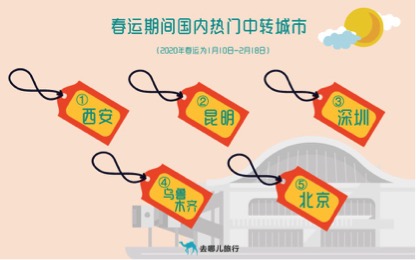 另外,昆明成为去哪儿网平台上2020年春运热度第二高的中转城市。大多数在昆明中转的旅客,最终会到达西双版纳、芒市、沧源、普洱和腾冲。