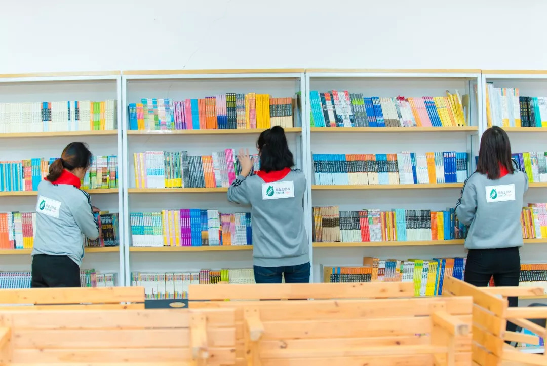 ▲邦泰志愿者搭建“邦泰安康图书馆”