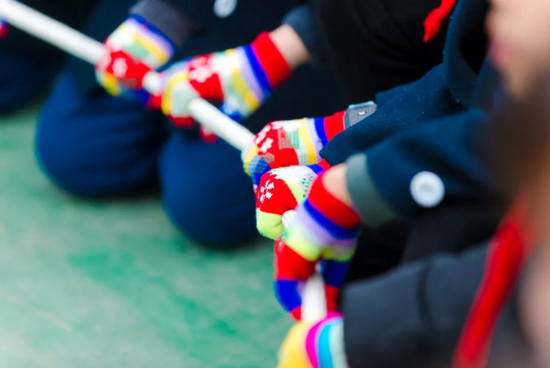 不同于一般的课程,老师通过有趣的游戏互动,让孩子们能够有所感悟和成长。在戴上“Hello小孩”爱心礼包中的手套后,孩子们在老师的带领下,参与课程互动。无论是“心灵电波”还是“绳索桥”,他们都全身心投入其中。特别是在“绳索桥”环节,每一个孩子都用尽全力紧紧拉住绳子,保护好同伴的安全。
