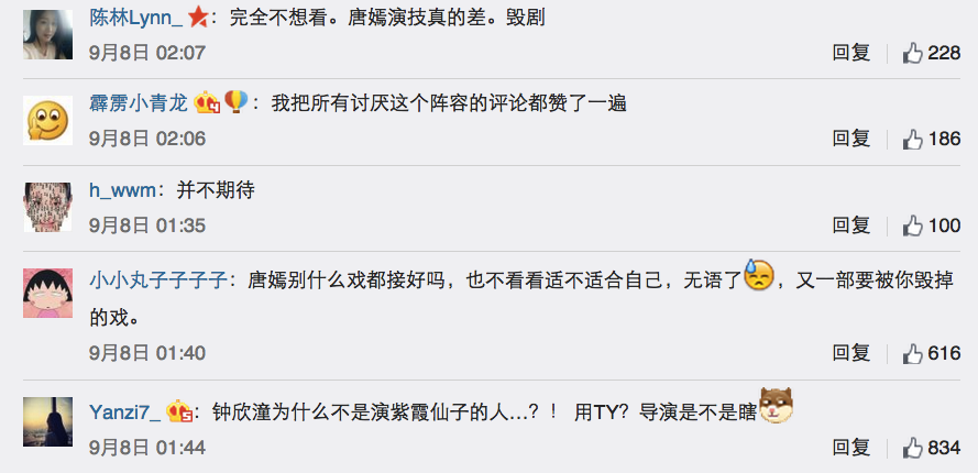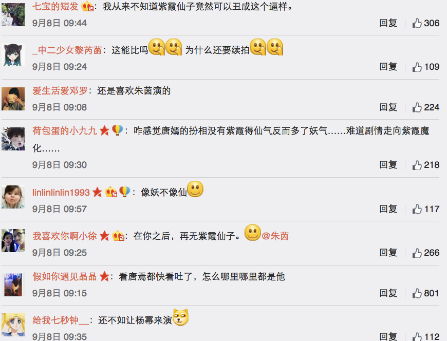 不过,装扮不像还是其次的问题,更大的争议在于唐嫣的演技。有网友认为唐嫣不管演什么角色都表情漠然,担心她没有能力演好紫霞仙子。