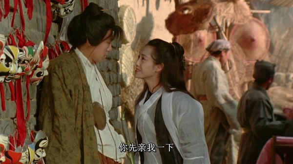 最后在西域城楼上,至尊宝上了一个刀客的身吻了下“紫霞”,转身离去。