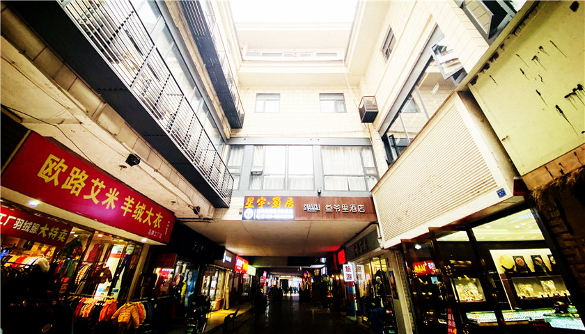 加上周边大大小小购物中心的“挤压”,如今的商业场除了一楼还有个别经营服装、鞋袜的商家在营业外,这里更多的是被客栈、火锅店给占据。走在这里,如不通过历史的描述,真的很难想像得出它也有过曾经的辉煌。